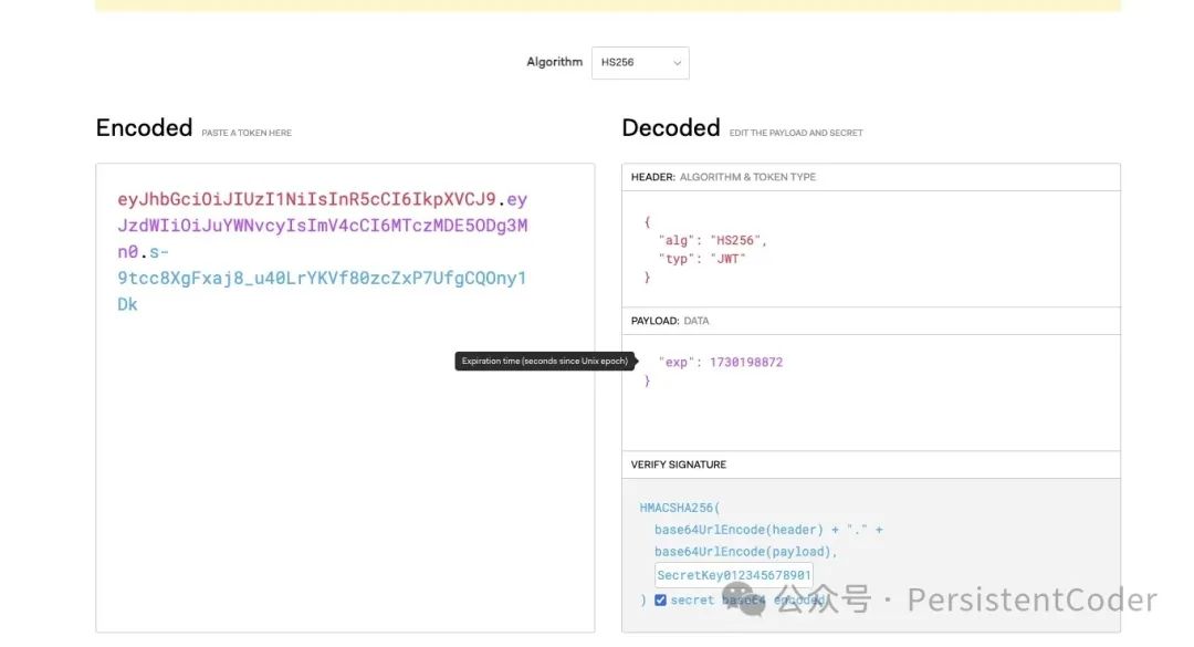 nacos.core.auth.default.token.secret.key=SecretKey012345678901234567890123456789012345678901234567890123456789那么使用jwt在线工具生成新的加密jwt: