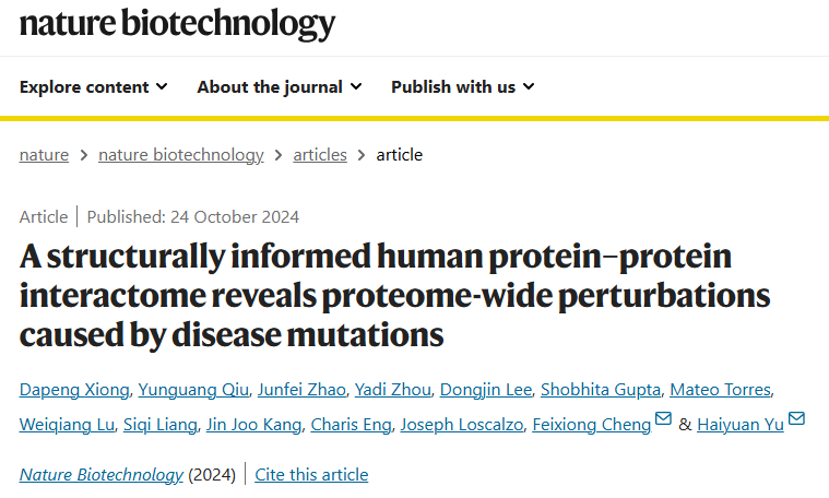 Xiong, D., Qiu, Y., Zhao, J. et al. A structurally informed human protein–protein interactome reveals proteome-wide perturbations caused by disease mutations. Nat Biotechnol (2024).