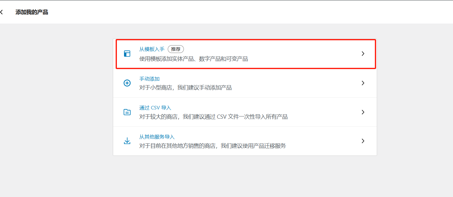 进入添加我的产品页面,这里我选择推荐的模式,从模版入手添加产品