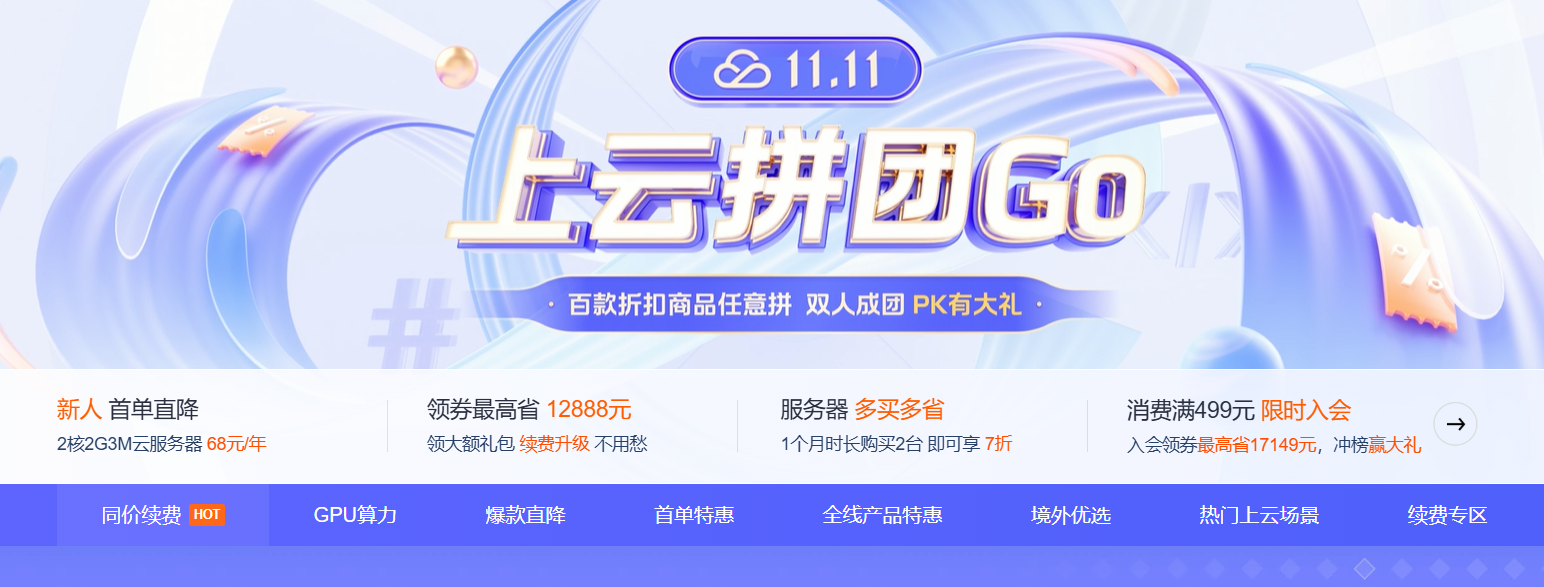 大家都知道,今年的经济形势比较严峻,那么作为夹缝中求生的中小企业就显得更加困难。在这种情况下,从企业的角度来考虑,如果还是像以往一样购买物理服务器,部署搭建基础的数据库服务,应用服务等,对于企业来说,确实是一笔不小的开支。那么在这样的情况下,企业上云无疑是最好的选择,于是腾讯云双十一首次推出了拼团GO活动,中小企业可以基于自身的业务场景需求来购买自己需要的云服务器、数据库、Redis等云产品服务,双十一钜惠活动地址:https://cloud.tencent.com/act/pro/double11-2024?fromSource=gwzcw.8891757.8891757.8891757