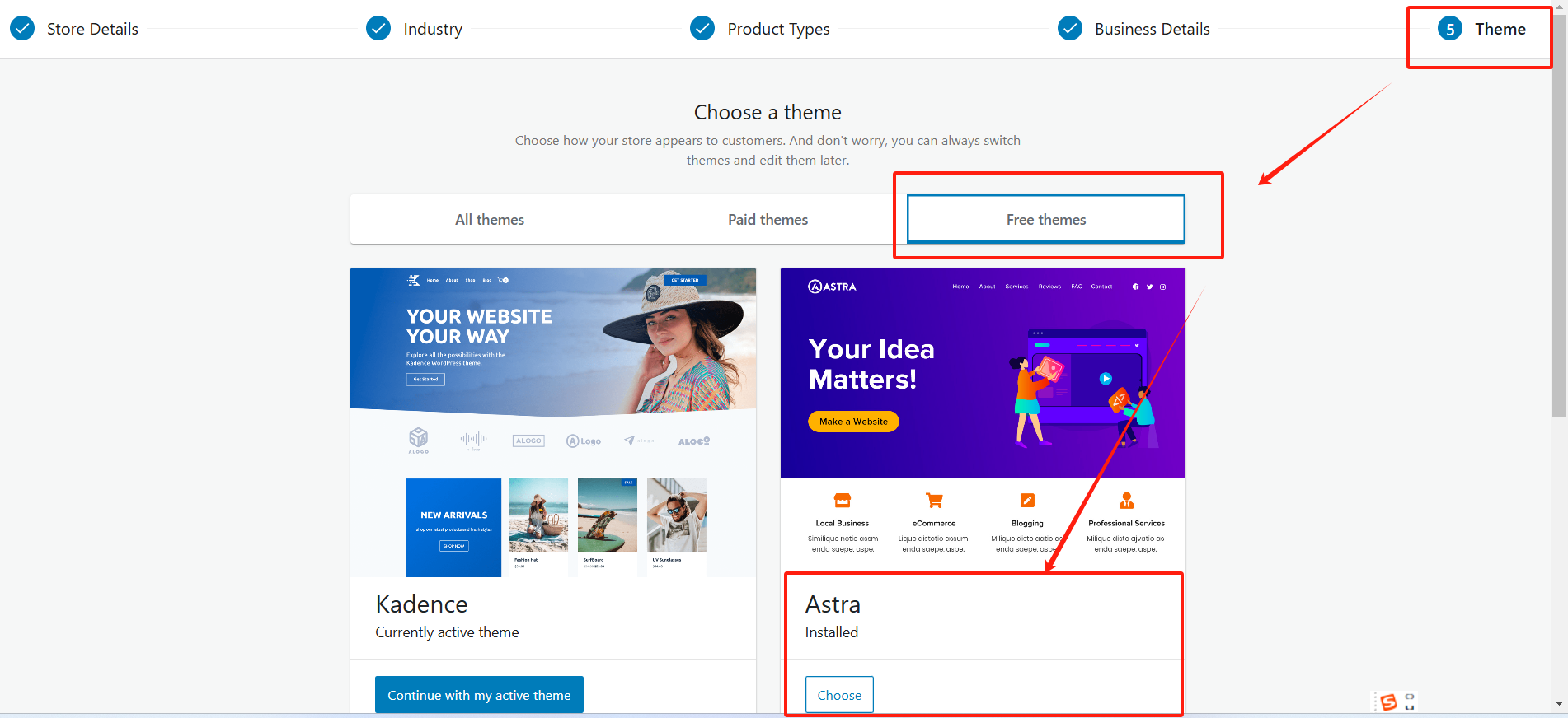 对于电商网站主题的选择,我们可以选择当前电商镜像模版已经安装好的免费的主题就可以了