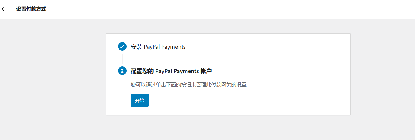 进入付款方式账户配置页面,在付款方式账户配置页面等待账户配置完成后,点击【开始】