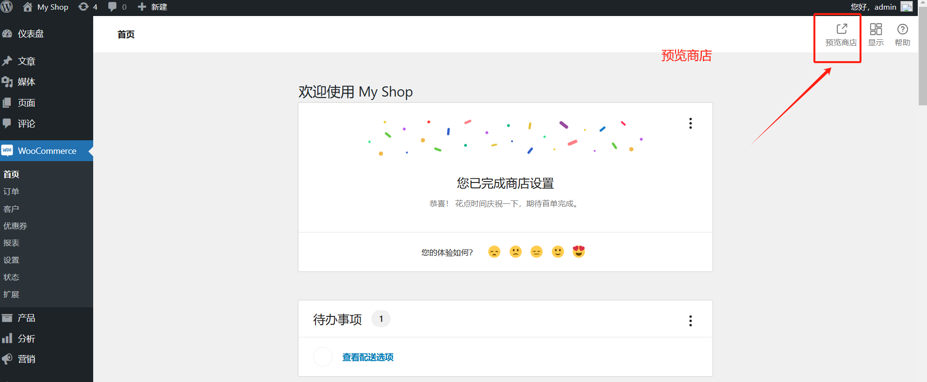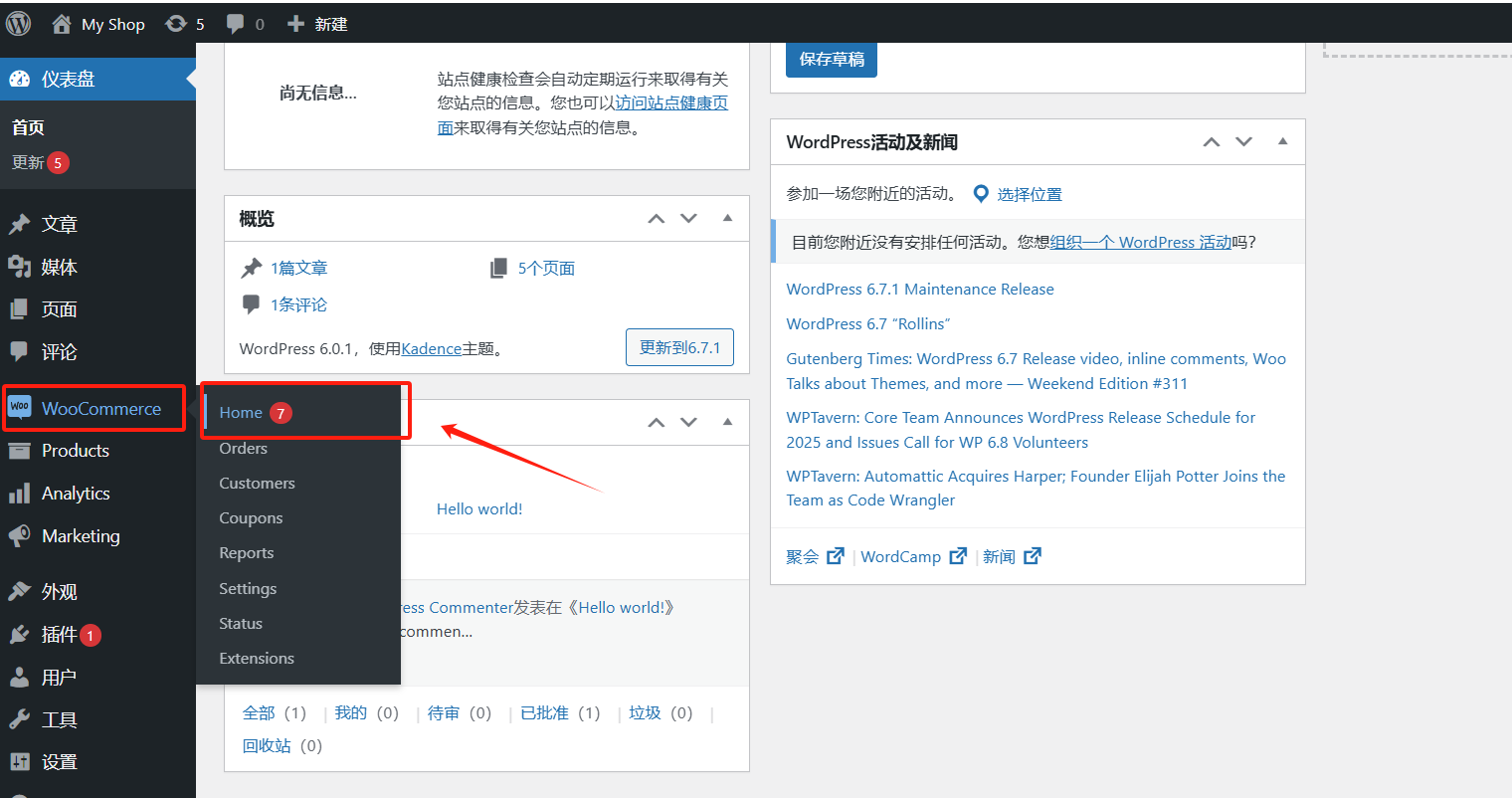 登录电商网站后台后,选择左侧导航中的 WooCommerce > Home,