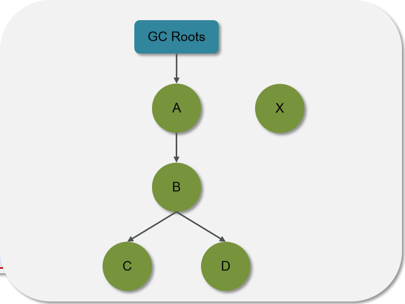 这个算法的基本思想就是通过一系列的称为“GC Roots”的对象作为起点,从这些节点开始向下搜索,节点所走过的路径称为引用链,当一个对象到GC Roots没有任何引用链相连的话,则证明此对象是不可用的,需要被回收。