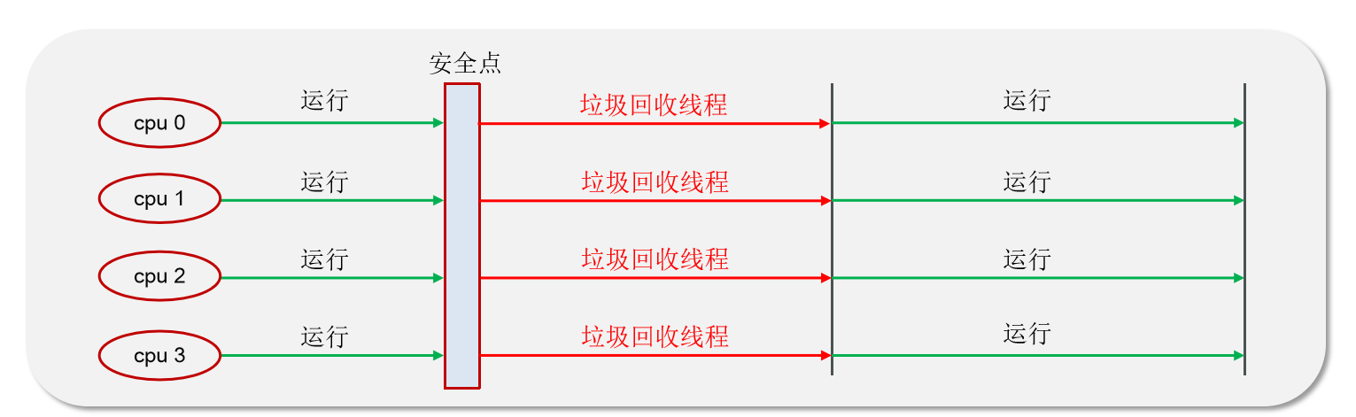 垃圾回收时,多个线程在工作,并且java应用中的所有线程都要暂停(STW),等待垃圾回收的完成。
