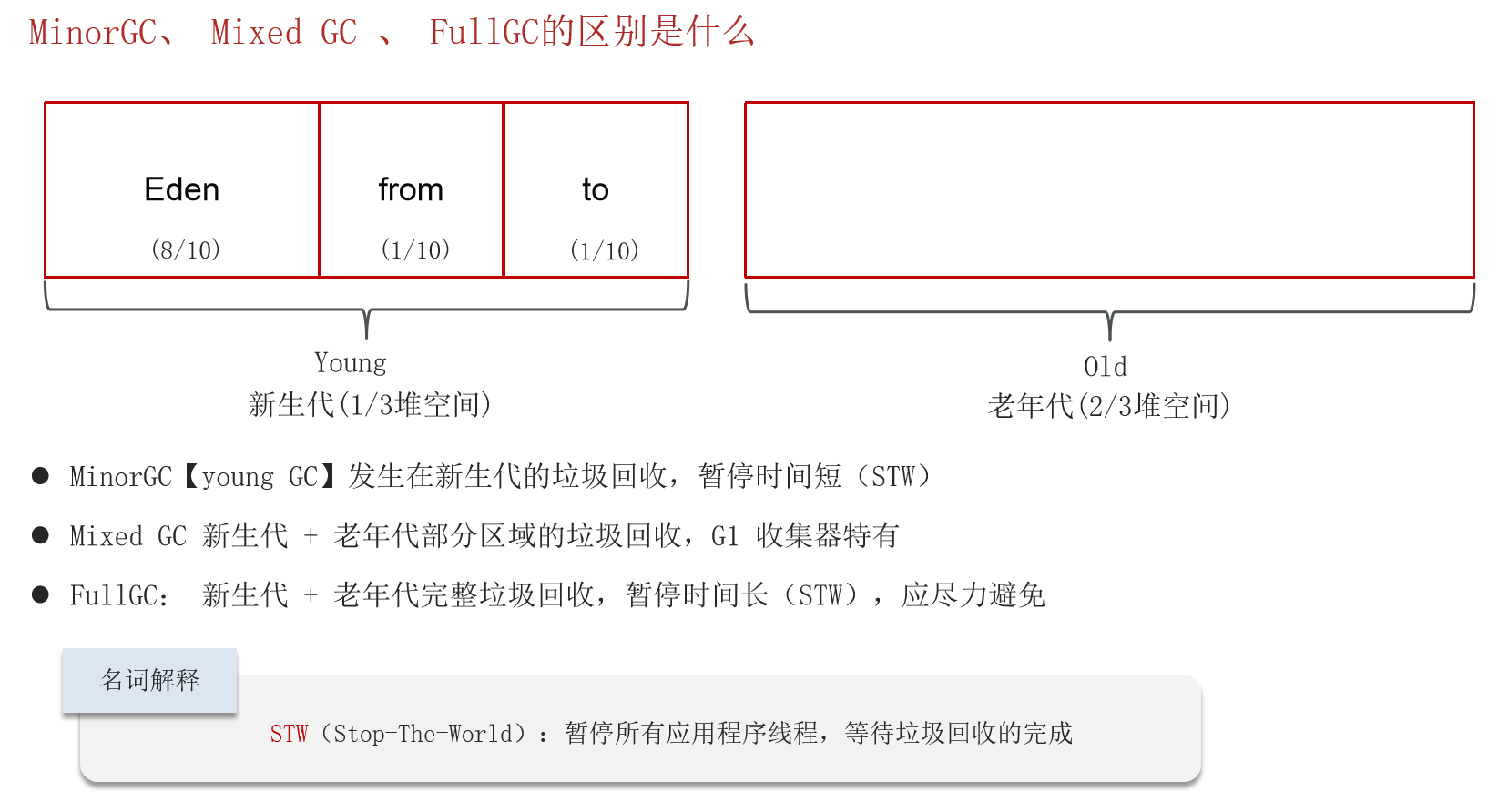 5)MinorGC、Mixed GC、FullGC的区别是什么