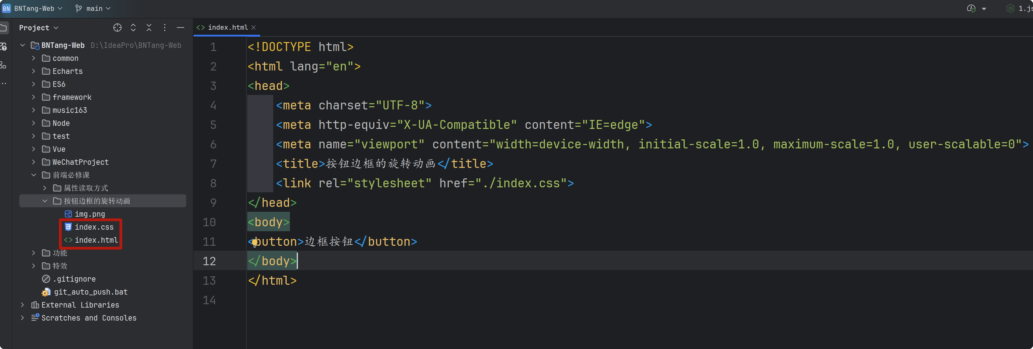 首先用你自己的开发工具,新建好 index.html,与 index.css: