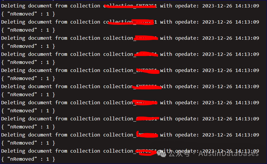 那么如果验证了脚本是正确的,且合理,下面就可以自动的去运行了。下面的脚本就是上面的升级版,直接运行删除语句进行数据的删除。通过下面的脚本,可以避免一个问题,就是遇到一次性删除数据量大,且你用条件来撰写删除脚本中,给数据库带来的大事务(MongoDB 也有事务的概念),如果那样操作也会导致MongoDB 刷脏以及磁盘压力。另一个原因这样操作上面也写到了。