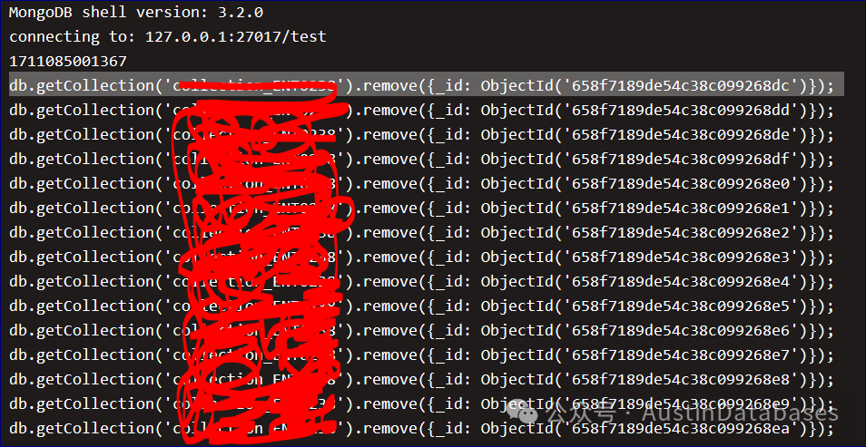 1 直接打印删除命令法,大家可以看一下这里有一个转换,主要是时间,因为程序员设计mognodb schema中根本没有给ISODATE,全部都是文字给出的时间,所以为了严谨,将他们的时间给进行了一个重塑,将文本变为了日期,在进行比对。