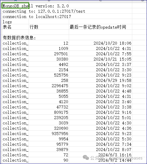 剩下的事情就是,对这个10000多张表进行分析,这里首先我们给出一个脚本来分析这个库里面的每个表行数,那些表是有数据的,那些表是无数据的,把无数据的表单独列出,且分析出到底那些表后续没有数据写入,这里时间点是2023-12-30日。