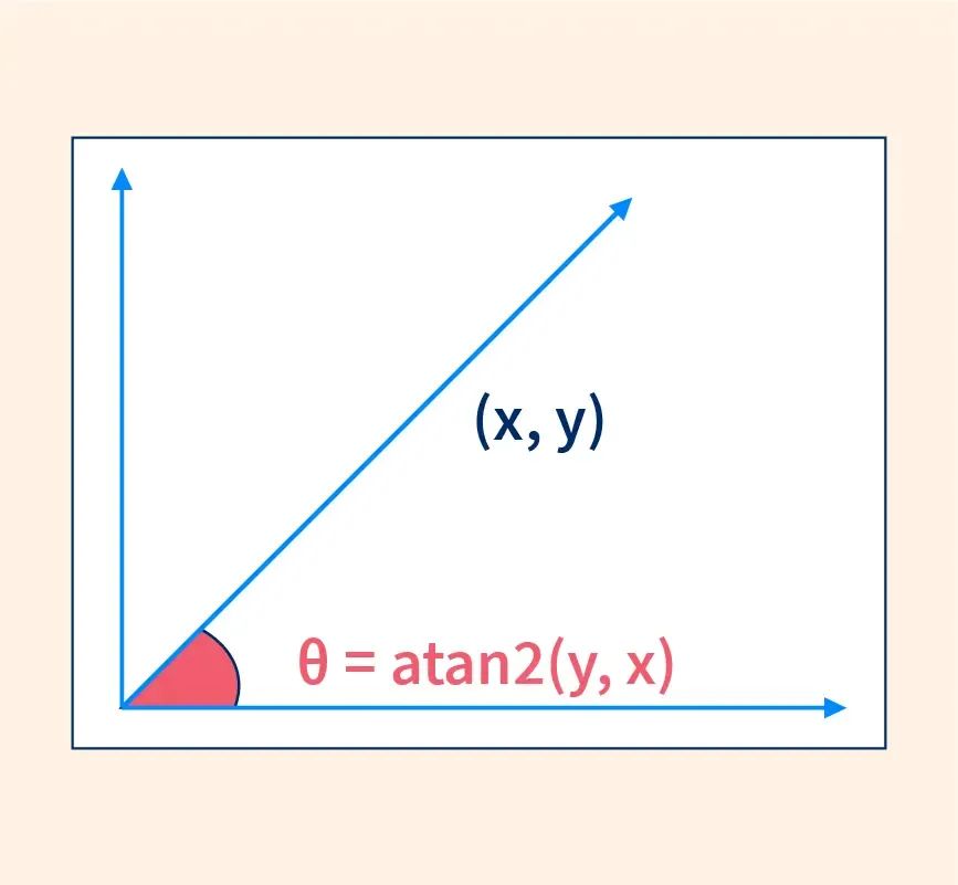 atan2函数在这个项目中,最关键的数学概念是atan2函数,它帮助我们计算箭头应该如何旋转才能指向鼠标的位置。