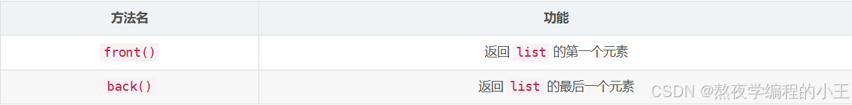front():返回列表中的第一个元素。back():返回列表中的最后一个元素。示例代码: