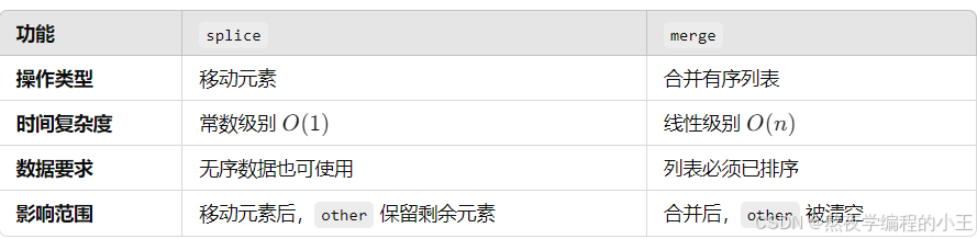 splice 是链表特有的高效数据操作,适合在多个列表之间移动元素而不进行复制。merge 适用于有序数据的合并,同时保持排序状态。在 C++ 中,