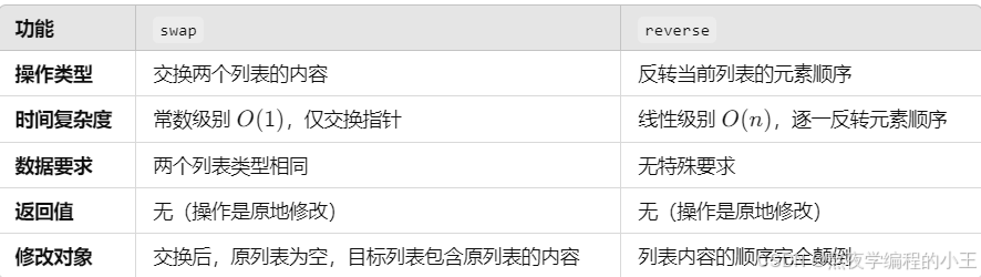 reverse 用于反转 std::list 中元素的顺序,使得列表中的元素顺序完全颠倒。reverse 是原地操作,不会创建新的列表。函数原型: