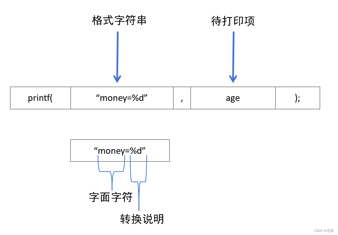 输出格式为:printf("输出格式符",输出项);