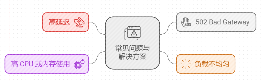 负载不均匀 | 算法选择不当 | 根据业务场景切换到合适的负载均衡算法(如权重分配)。 |