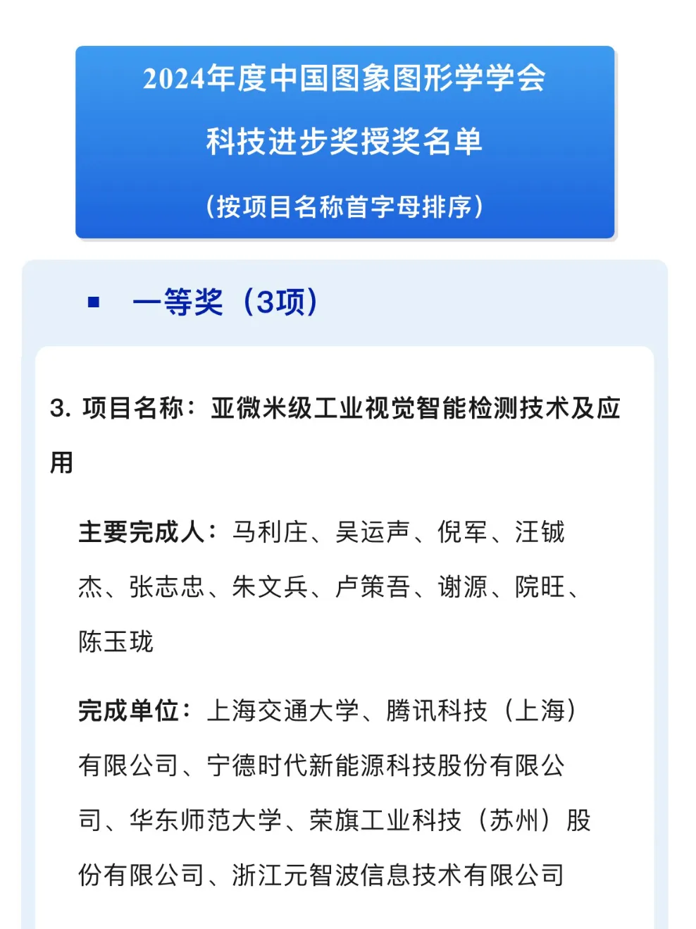 近日,2024年度中国图象图形学学会(简称CSIG)科学技术奖揭晓,腾讯优图实验室(属于腾讯云与智慧产业事业群「也简称 CSIG」)联合发起的「亚微米级工业视觉智能检测技术及应用」项目,拿下科技进步奖一等奖!