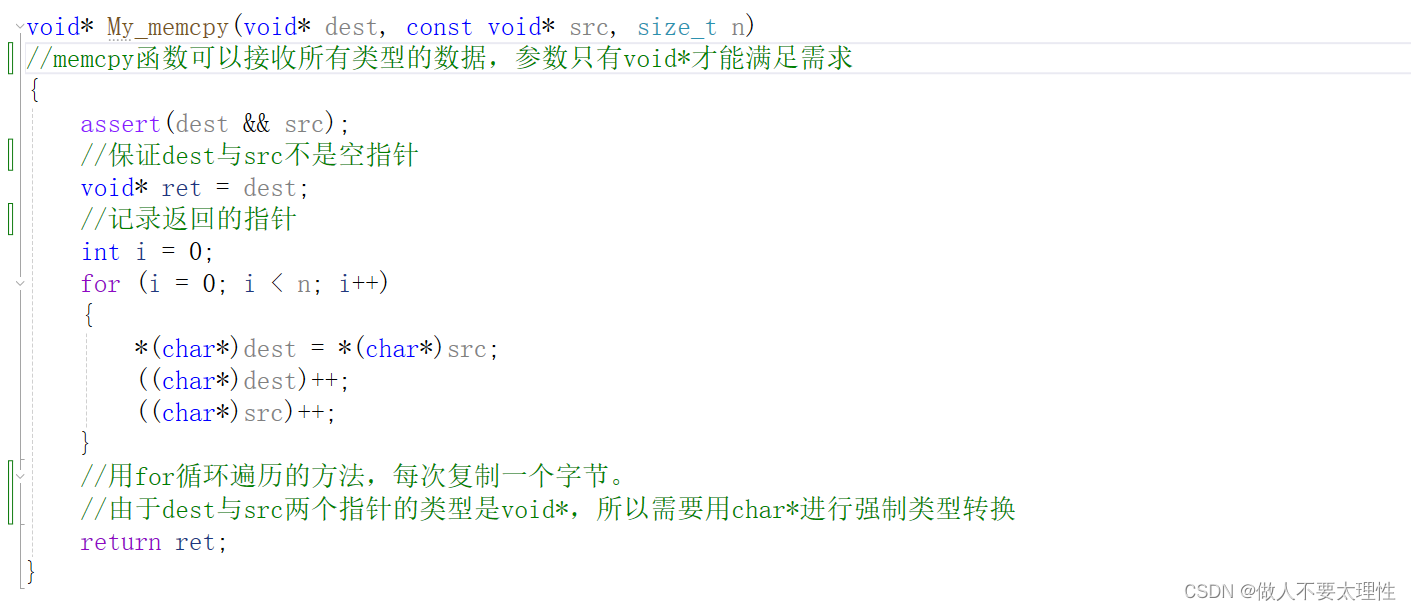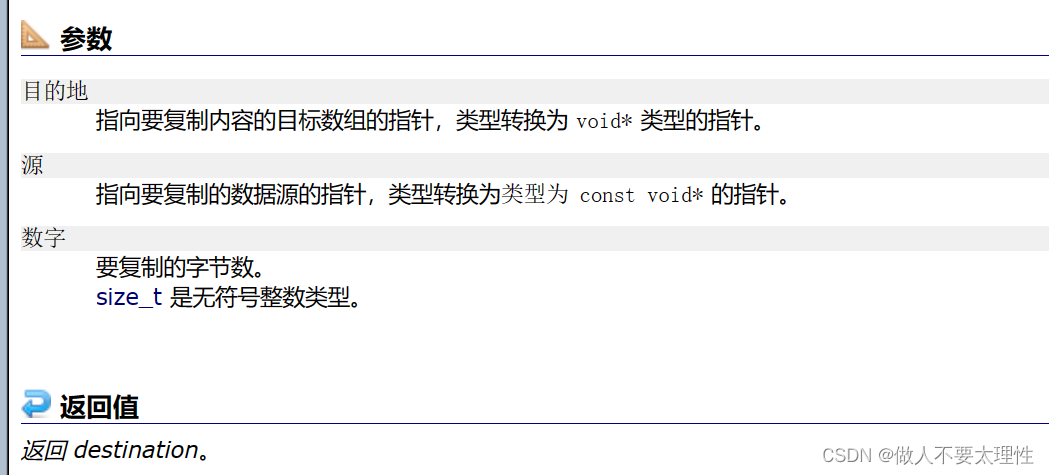 我们可以参照cplusplus官方memcpy函数的格式进行模拟。