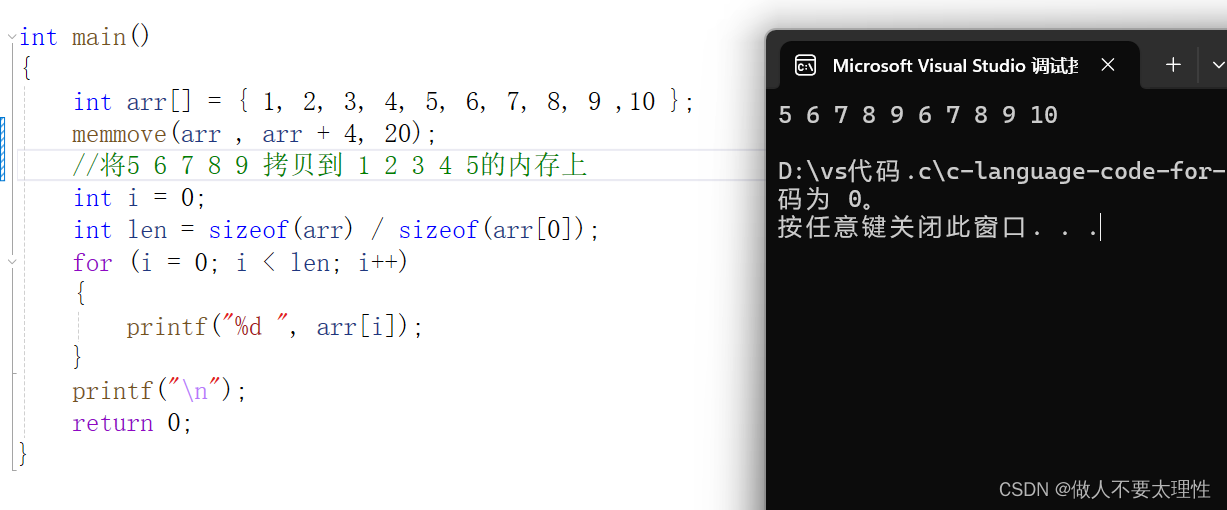 (在vs2022中,memcpy是可以实现重叠拷贝的,但不能保证所有的memcpy都可以。)