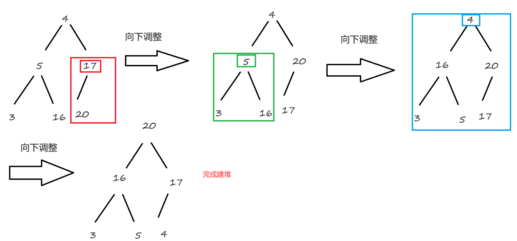 向下调整与向上调整是类似的,但也有区别。