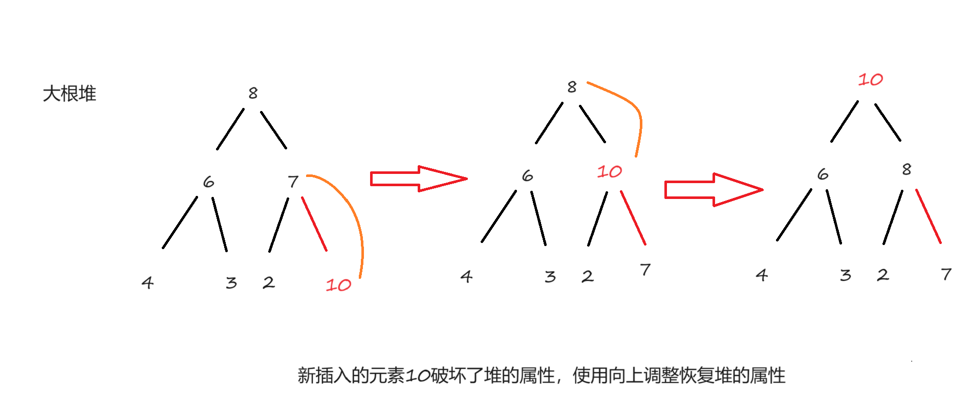 插入数据后使用向上调整恢复堆的属性。