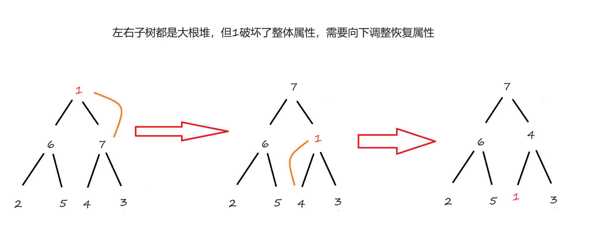 以大根堆为例,需要先找到左右孩子中较大的一个,再跟父亲比较。