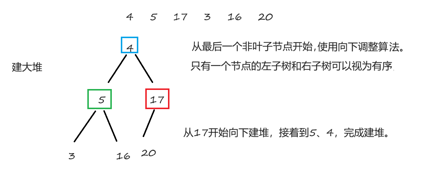 调整算法用于堆的插入和删除后恢复堆的属性,但是用调整算法的前提是堆原本是有序的(大根堆或者小根堆)