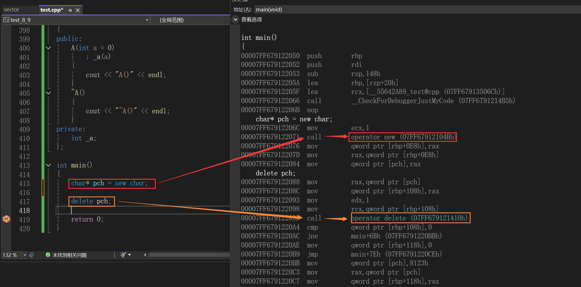new和delete是用户进行动态内存申请和释放的操作符,operator new和operator delete系统提供的全局函数。