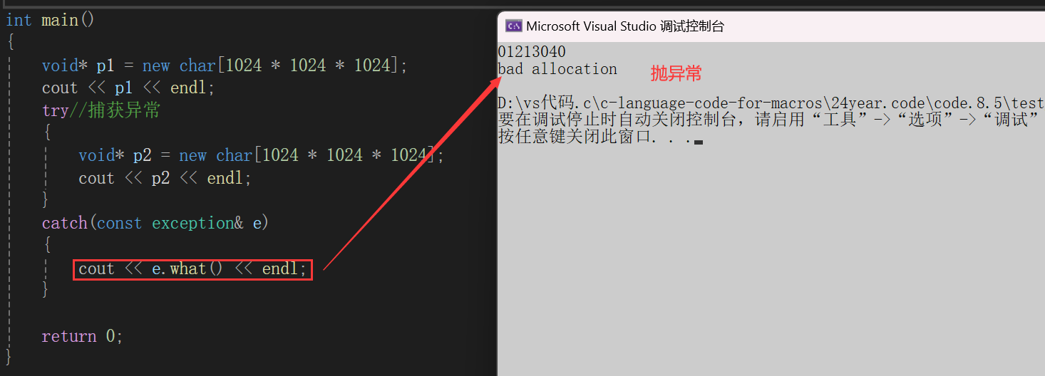 malloc开辟失败会返回空指针,但是new开辟失败会抛异常,这个异常我们是要捕获的。