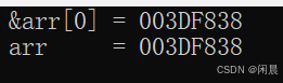 更具运行结果能够证明,arr 与 &arr[0] 是等价的,都表示着数组首元素的地址