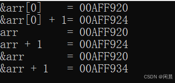 这里会不会看着有点懵,&arr,与arr地址是相同的。不妨看看这串代码。