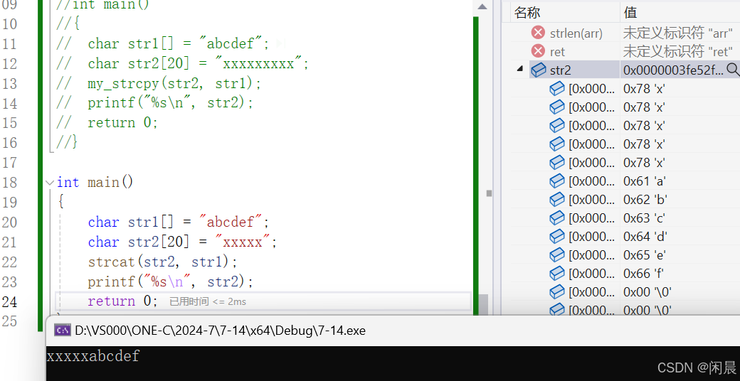 }通过调试代码发现,在进行追加时,是从目标空间字符串的结尾'\0'开始追加,并将其覆盖。
