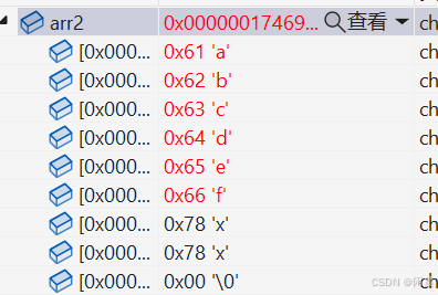 char arr2[] = "axcdef";