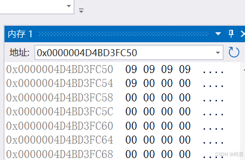 }这不是一个使用的案例,通过运行代码能够发现数组arr1和arr2的结果相当的大,这是因为memset是在字节上设置内容,这里的第一条memset语句,将数组arr2里的五个字节内容,都放置了一个数字9,而内存里的 09 09 09 09实际上是16进制数,0x09090909,所以在打印的结果上会很大。