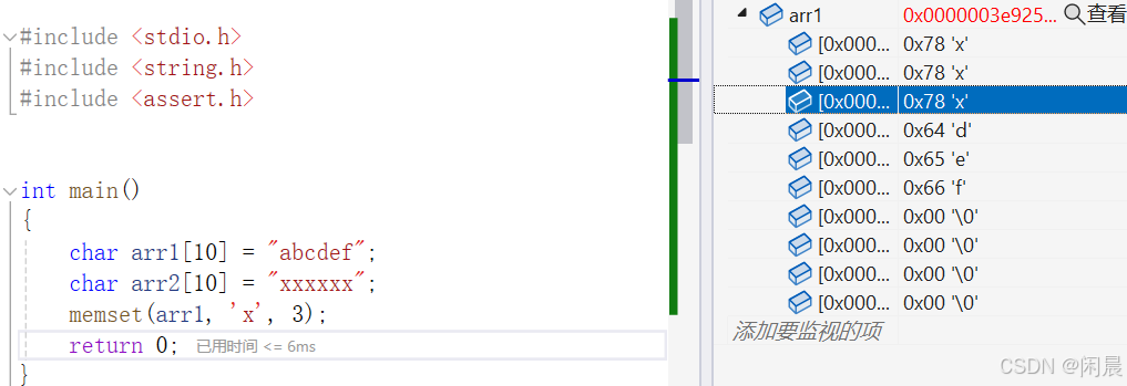 这里以字符串为例,字符串的大小是一个字节,这里我试图将字符数组arr1里的前三个字节内容置为x。