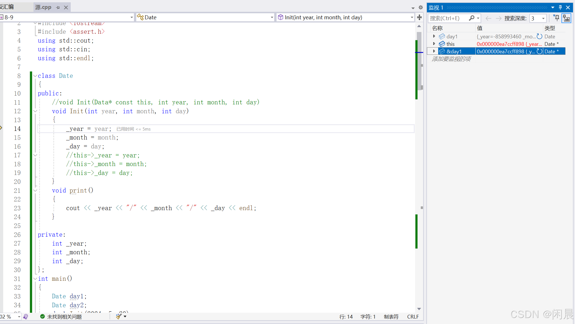 Init函数时,函数是如何区别是day1还是day2的。这里就通过C++提供的隐含的this指针来解决。