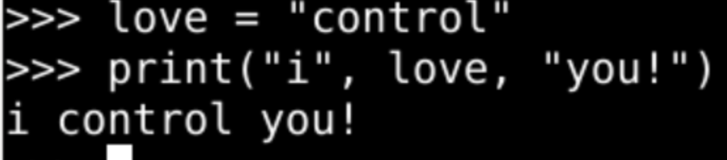 love = "control" print("i", love, "you!")