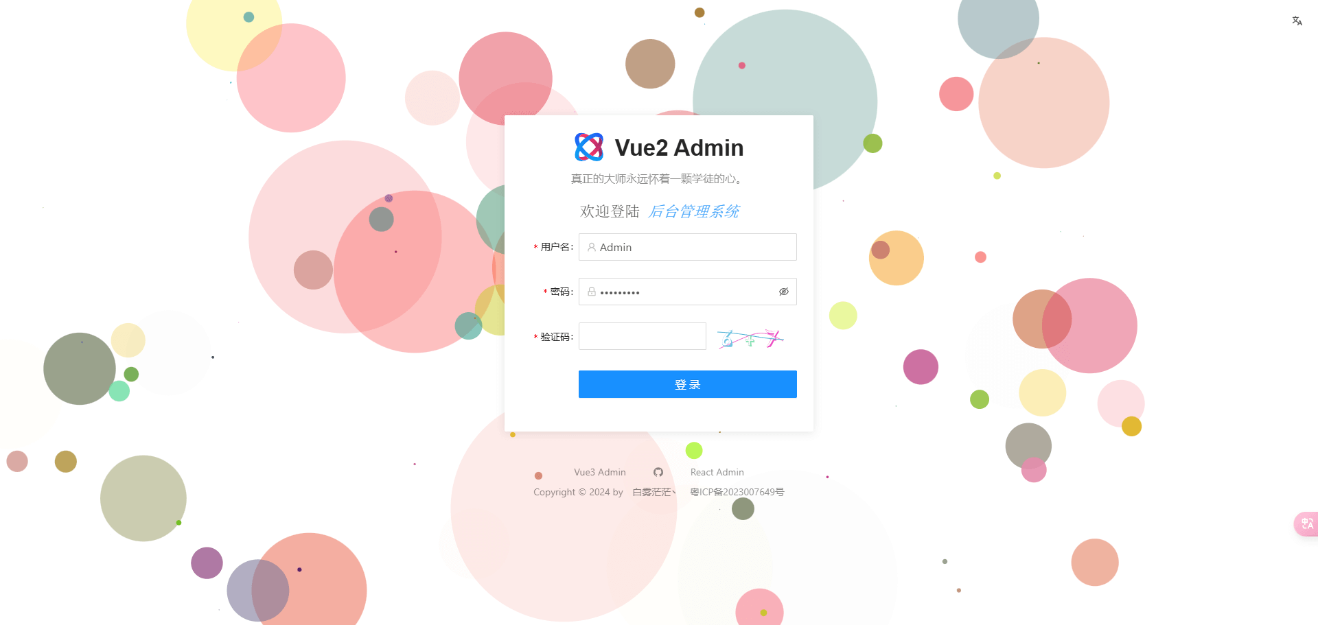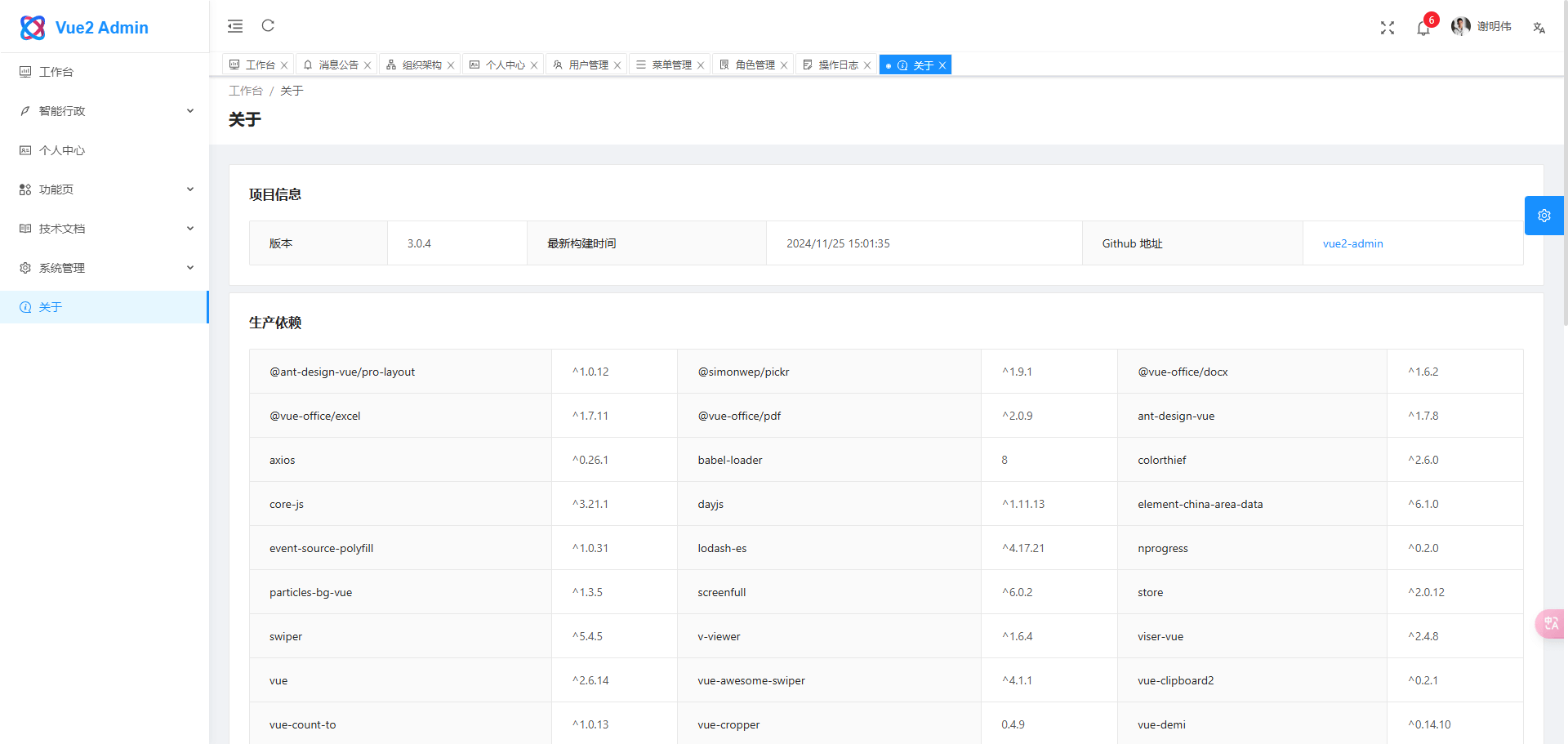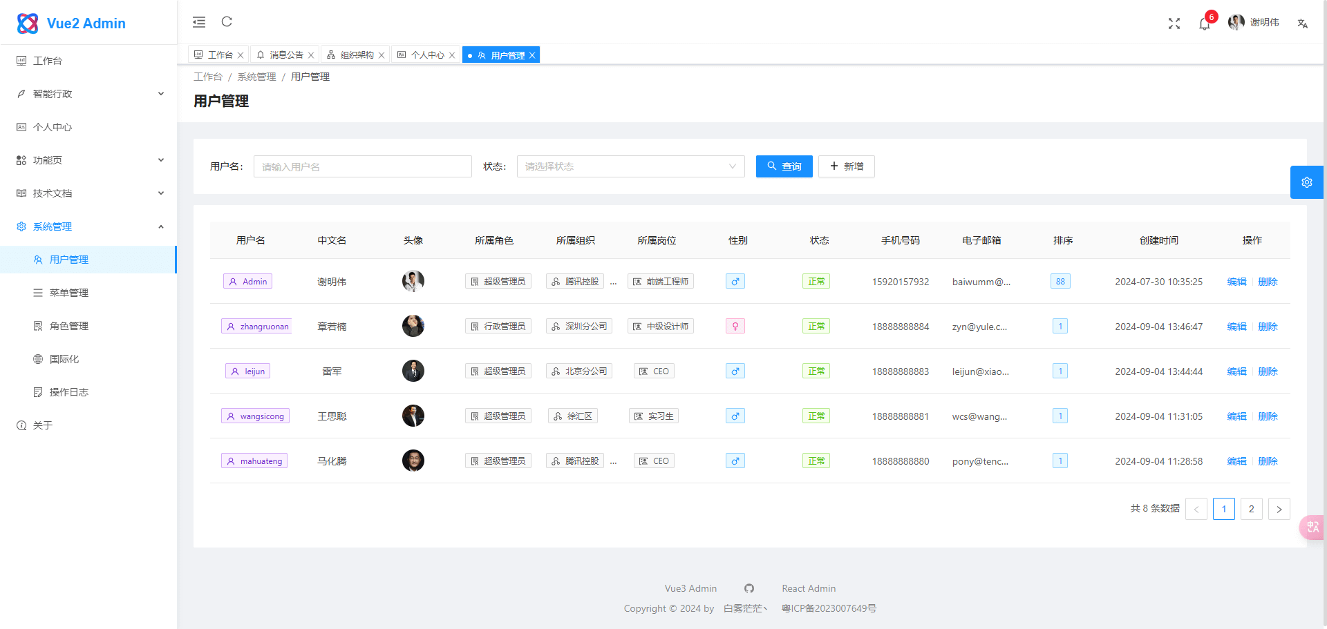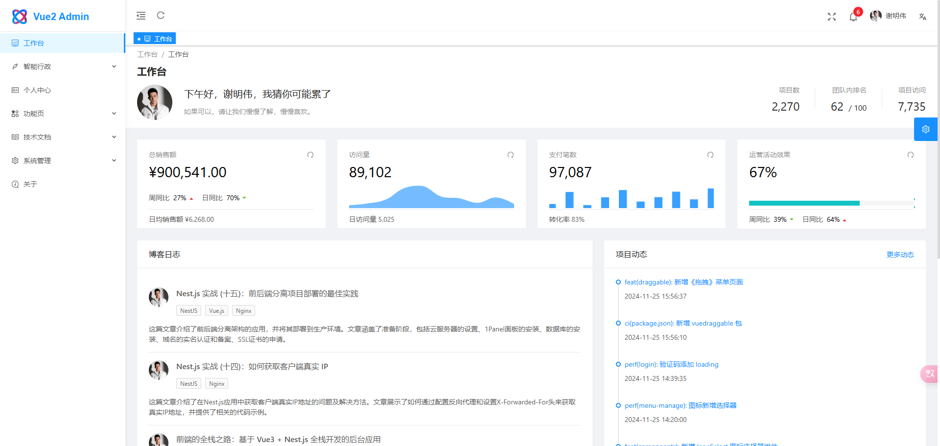 Vue2 Admin 是一个前端基于 Ant Design Pro 二次开发,后端基于 Nest.js 的全栈后台应用,适合学习全栈开发的同学参考学习。