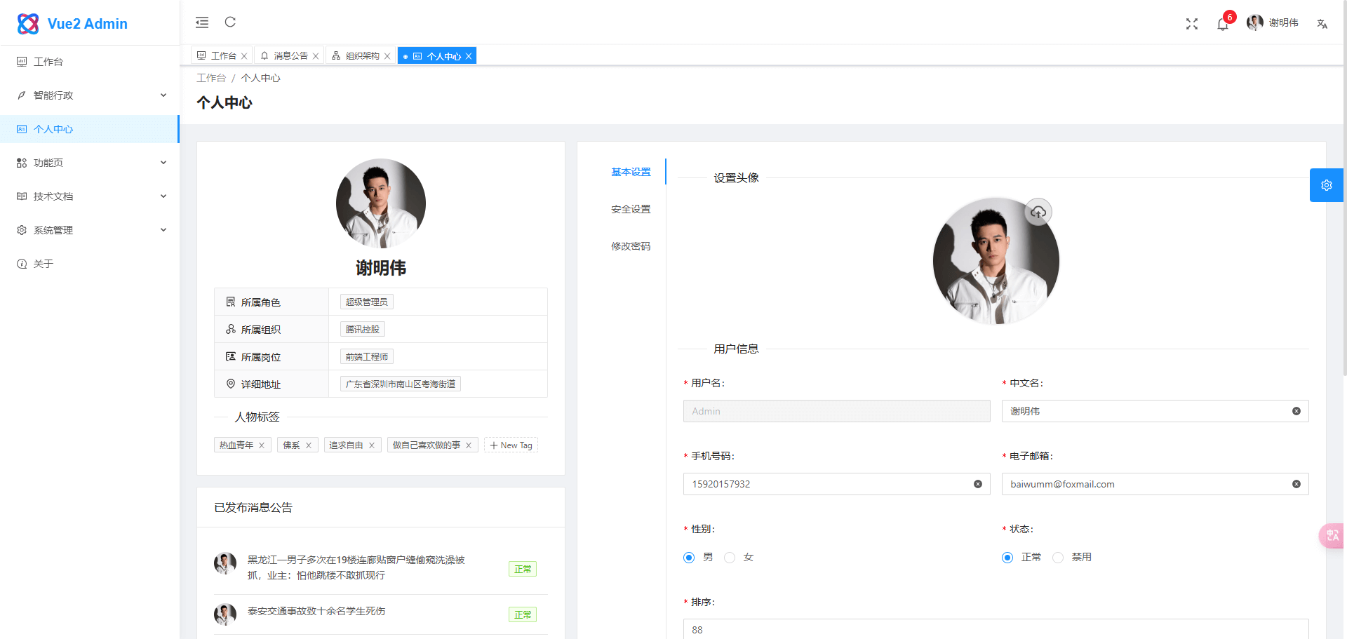 - 个人中心