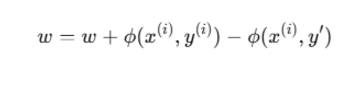 模型学习目标是找到权重向量 w,使得 〈w,ϕ(x,y)〉的值最大,其中 ϕ(x,y)表示特征向量。