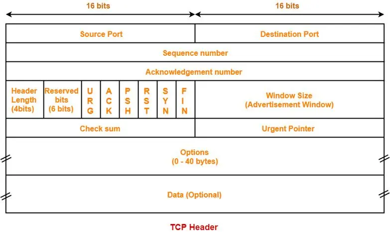 | 数据偏移(4位) | 保留(6位) | 标志位(6位) | 窗口大小(16位) |