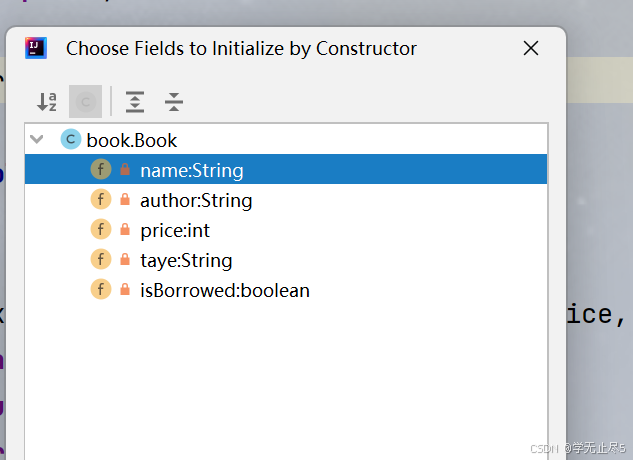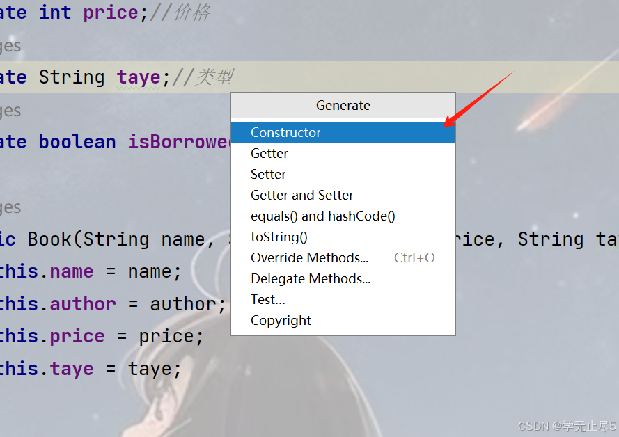 }这里可以通过快捷键alt+insert快速构造成员方法,也可以快速构建get和set