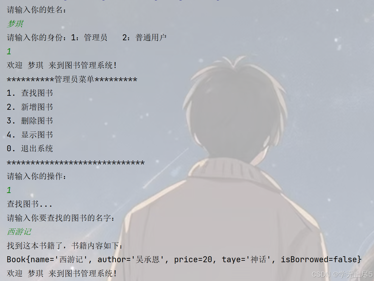 System.out.println("欢迎 "+this.name+" 来到图书管理系统!");