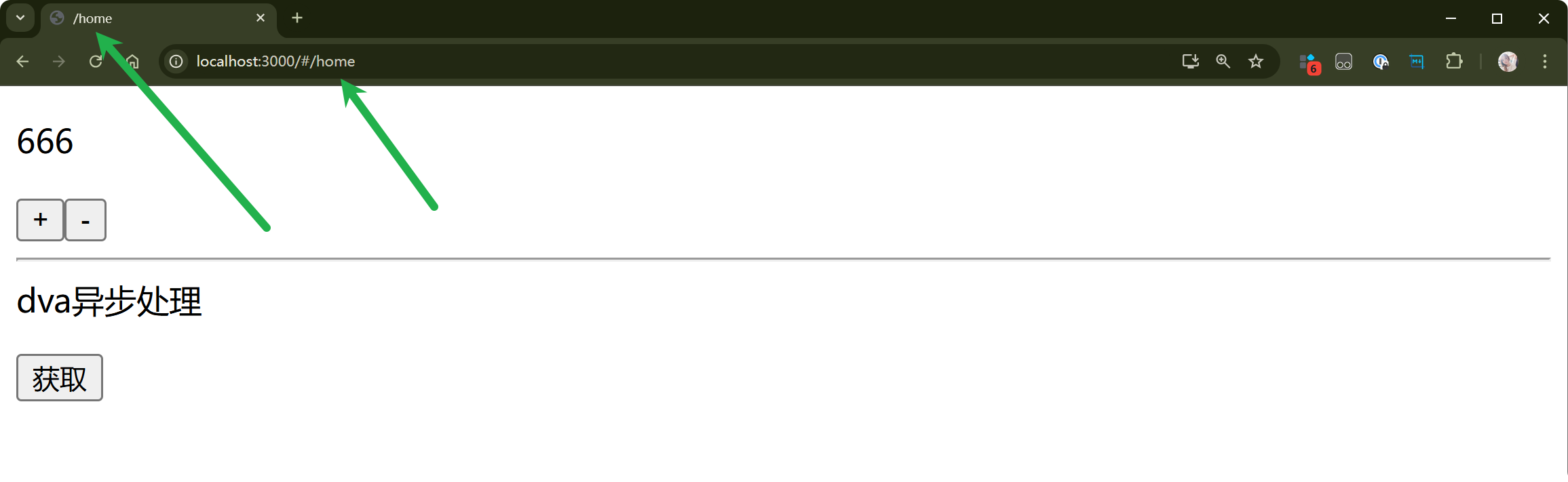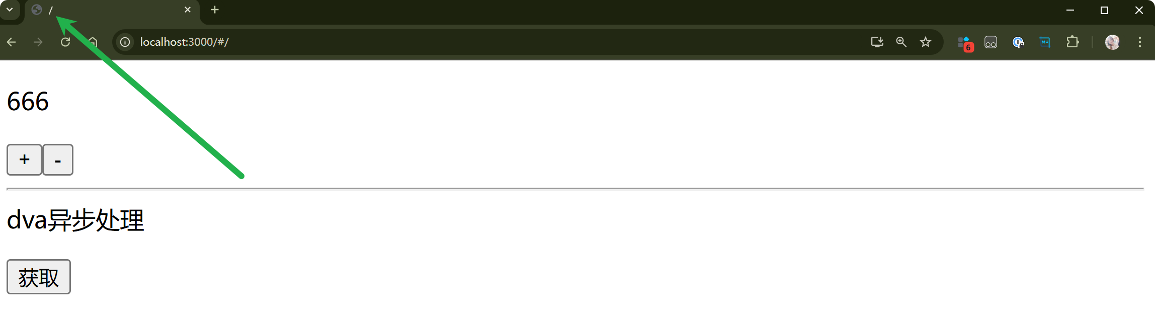我这里默认是项目已经启动了,打开浏览器访问我们的 dva demo 项目内容,首先就简单的访问首页也就是 / :