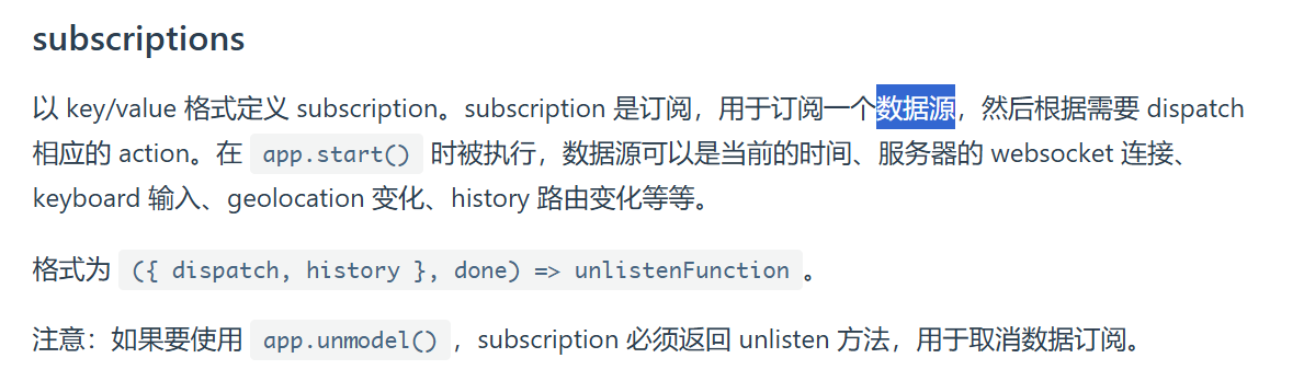 找到 Dva 文档的 Subscription 了解一下。经过我对文档阅读,发现: