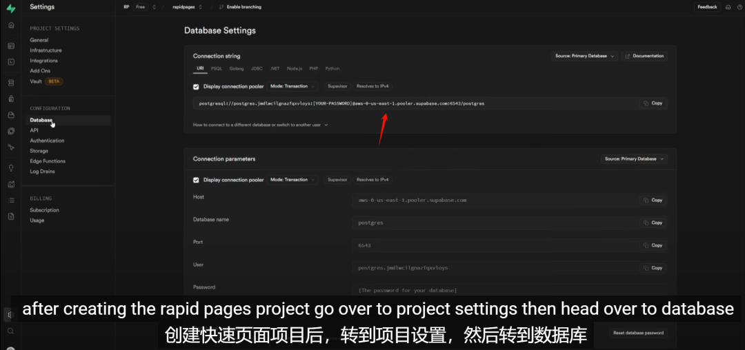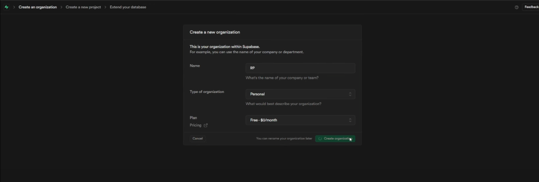 接下来,前往Supabase设置你的数据库API密钥。创建一个账户,这完全是免费的,所以只需简单地创建你的账户,创建你的数据库,点击“创建新项目”,