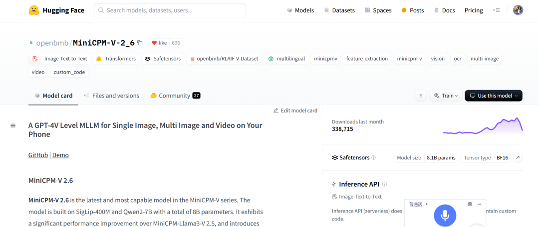 如果你访问 Hugging Face,他们提供了很多关于这个模型的详细信息,你可以浏览并查看相关内容。
