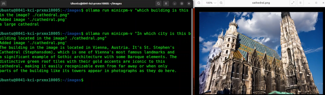 模型识别出了这是一座大教堂,当我进一步询问建筑的地点时,它正确地回答这是位于奥地利维也纳的圣斯蒂芬大教堂。