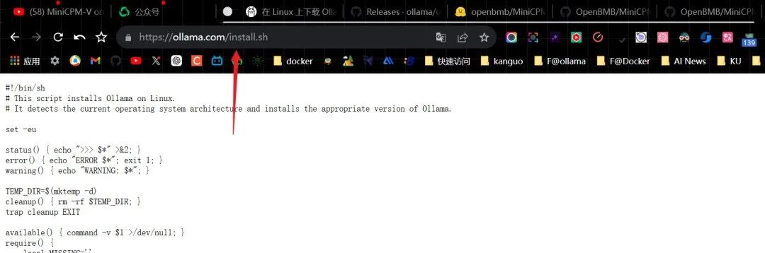 然后去这个网址把脚本文件复制下来(或者下载 install.sh):https://ollama.com/install.sh