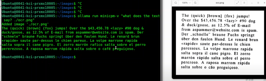 现在你可以看到,它识别了括号、百分号,甚至还正确识别了特殊字符,比如带重音符的字母。它不仅识别了英文,还识别了其他语言,OCR 效果非常好。